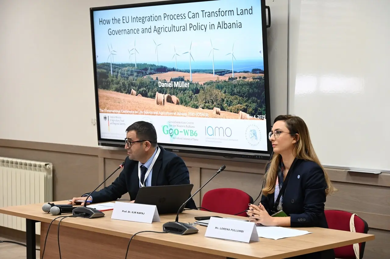 Gjatë këtij sesioni, Prof. Daniel Müller nga Universiteti Humboldt i Berlinit, foli mbi mënyrën se si procesi i integrimit në Bashkimin Evropian mund të transformojë qeverisjen e tokës dhe politikat bujqësore në Shqipëri.