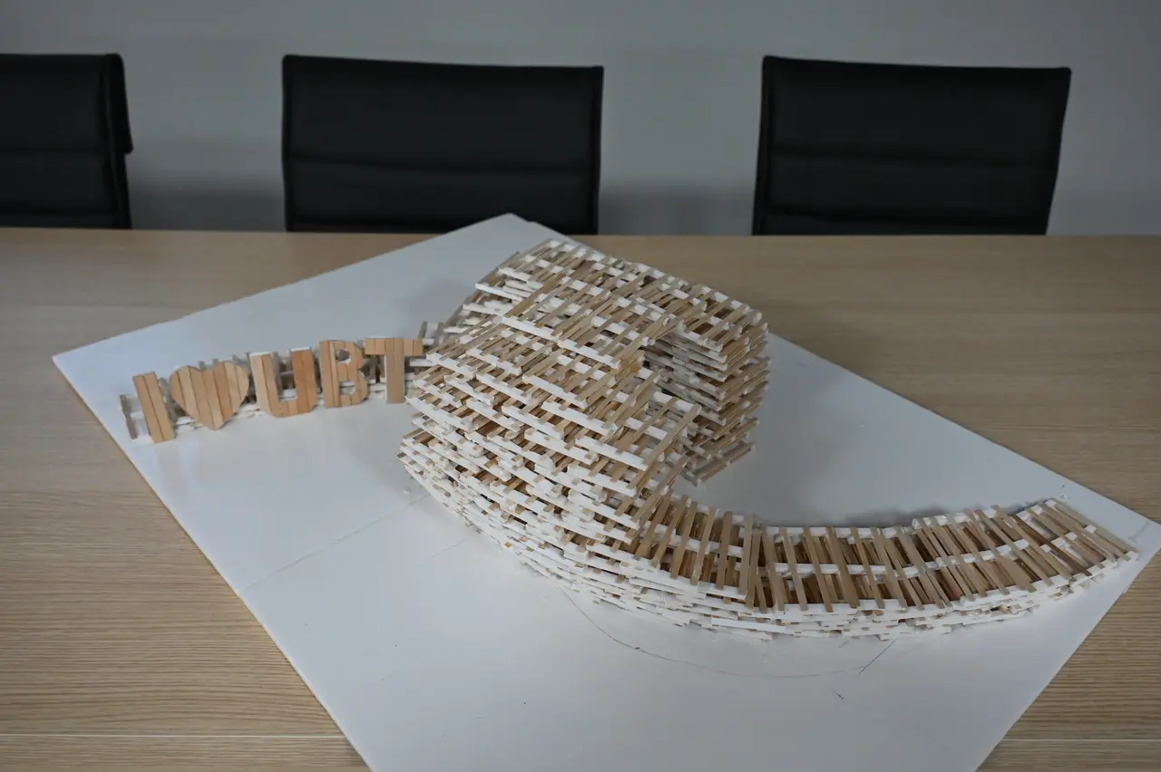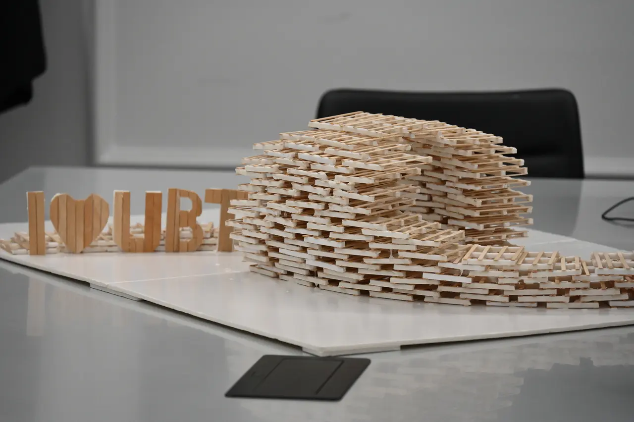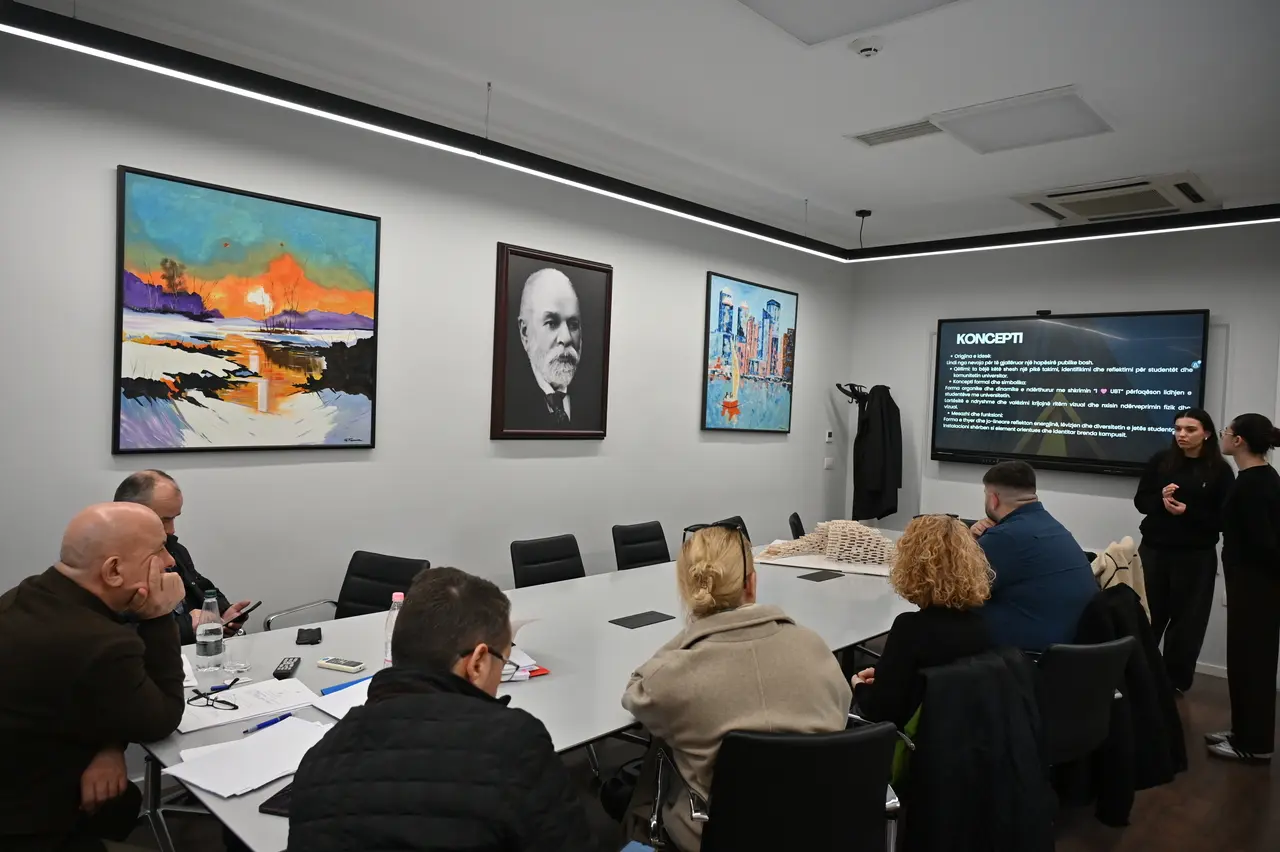 Në ambientet e Rektoratit të UBT u prezantua një instalacion unik prej druri, i projektuar nga studentët e vitit të tretë të degës së Dizajnit të Mobiljeve.