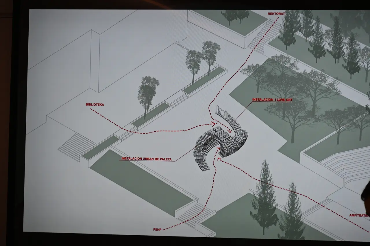 I konceptuar si një pikë referimi dhe hapësirë rekreative për studentët e UBT-së, instalacioni do të funksionojë si një ambient për bashkëpunim dhe relaksim. Projekti përfaqëson ndërthurjen e kreativitetit, funksionalitetit dhe përgjegjësisë mjedisore, pasi është projektuar dhe do të realizohet me baleta druri, duke e bërë kështu miqësor me mjedisin.