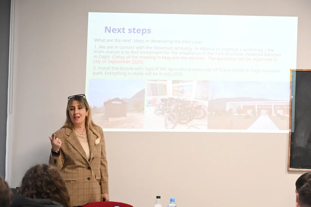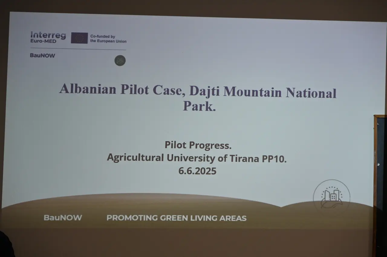 Zv. Rektorja për Marrëdhëniet me Publikun, Prof. Asoc. Romina Koto, prezantoi para një auditori me studentë të programeve të mjedisit, progresin e rastit pilot në Parkun Kombëtar të Dajtit, në kuadër të projektit ndërkombëtar Interreg Euro-MED “BauNOË”, një iniciativë e bashkëfinancuar nga BE-ja që synon promovimin e zonave të gjelbra dhe zhvillimin e qëndrueshëm.