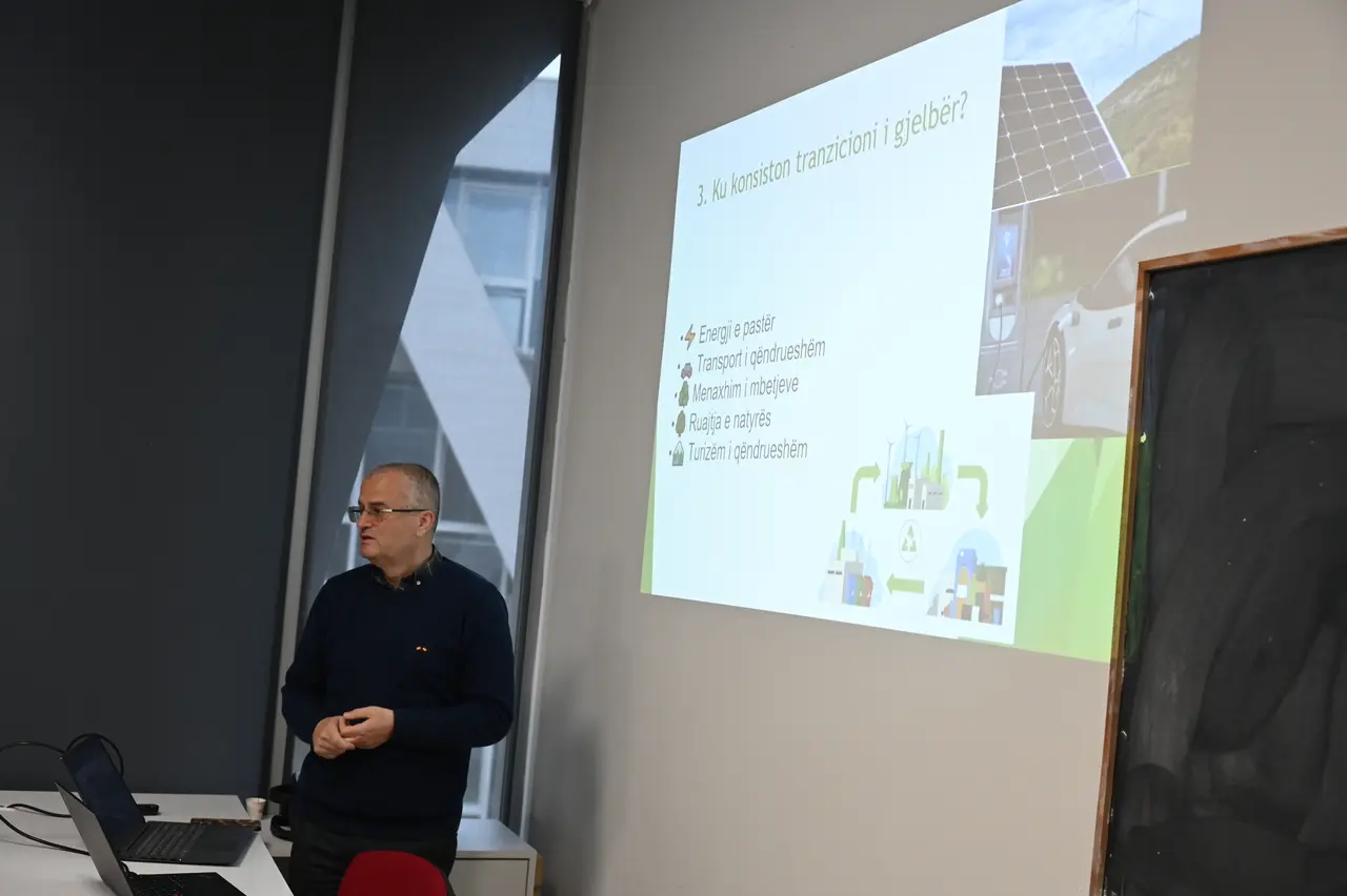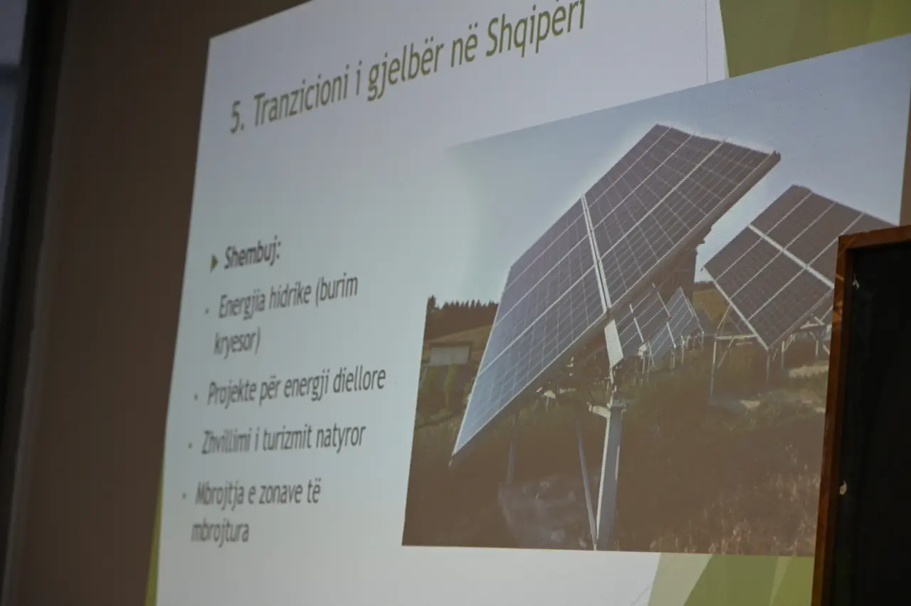 Në këtë prezantim u diskutua edhe për konceptet bazë të tranzicionit të gjelbër, i cili nënkupton kalimin drejt një ekonomie të qëndrueshme dhe miqësore me mjedisin, përmes uljes së ndotjes dhe emetimeve të CO₂, përdorimit të energjive të rinovueshme, mbrojtjes së biodiversitetit dhe zhvillimit të qëndrueshëm ekonomik.
