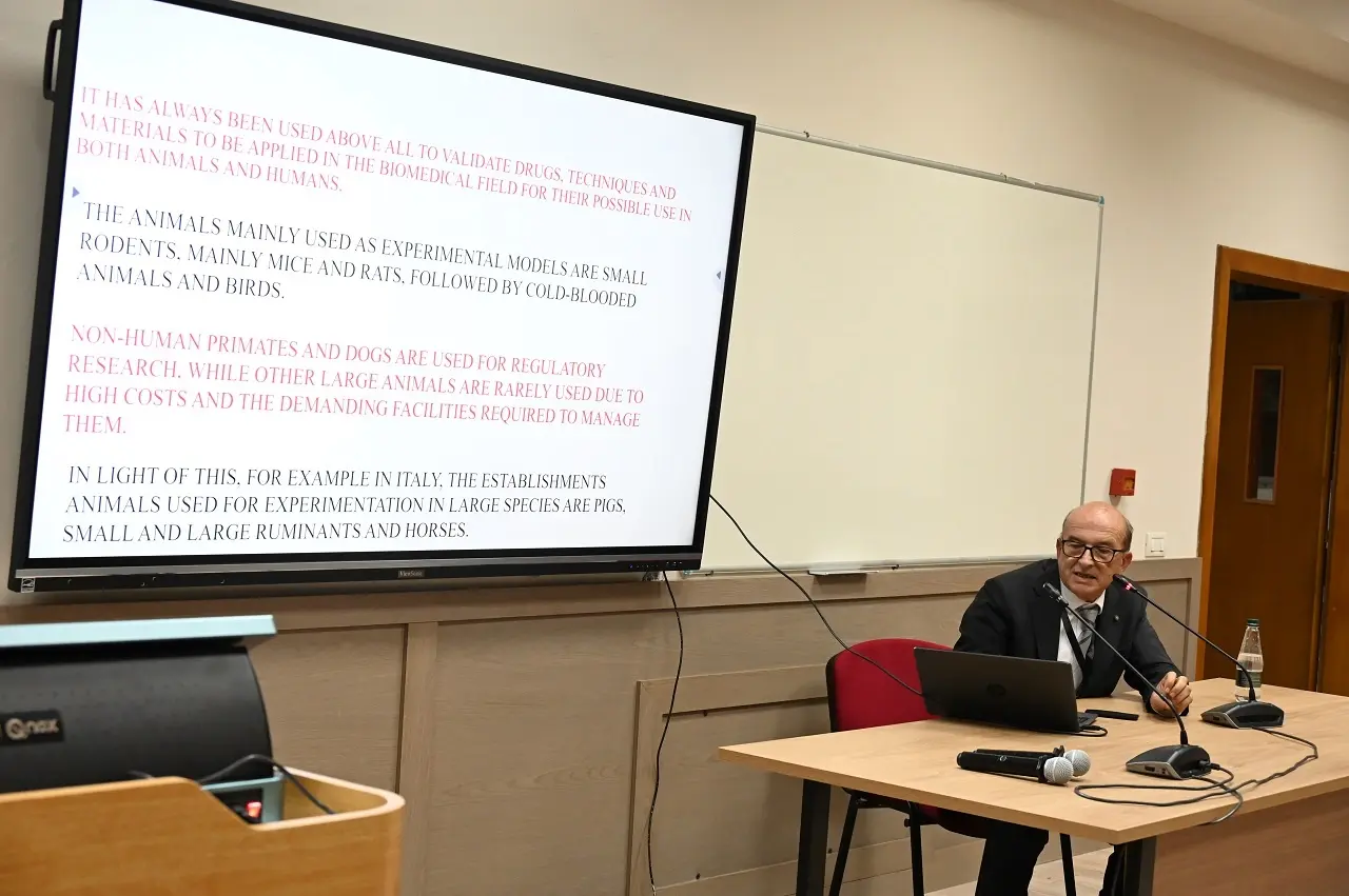 Prof. Antonio Crovace nga University of Bari “Aldo Moro”, Itali paraqiti temën “Kafshët e mëdha si modele të mjekësisë translacionale”, duke shpjeguar rolin thelbësor që luajnë kafshët në zhvillimin e terapive të reja për njerëzit dhe në përmirësimin e mirëqenies së tyre përmes kërkimeve të avancuara biologjike.