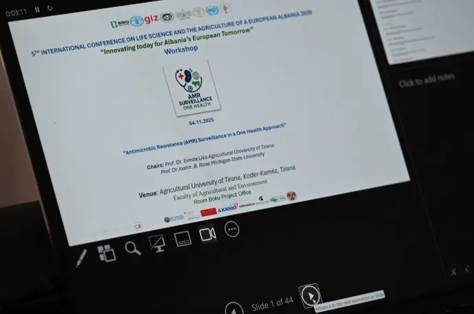 Workshop-i i dytë me temë "Monitorimi i rezistencës antimikrobike (AMR) në qasjen “Një Shëndet”, u zhvillua përgjatë Konferencës ICOALS 5, në të cilin u trajtuan sfidat dhe mundësitë në monitorimin e rezistencës antimikrobike (AMR) përmes qasjes së integruar “Një Shëndet”.