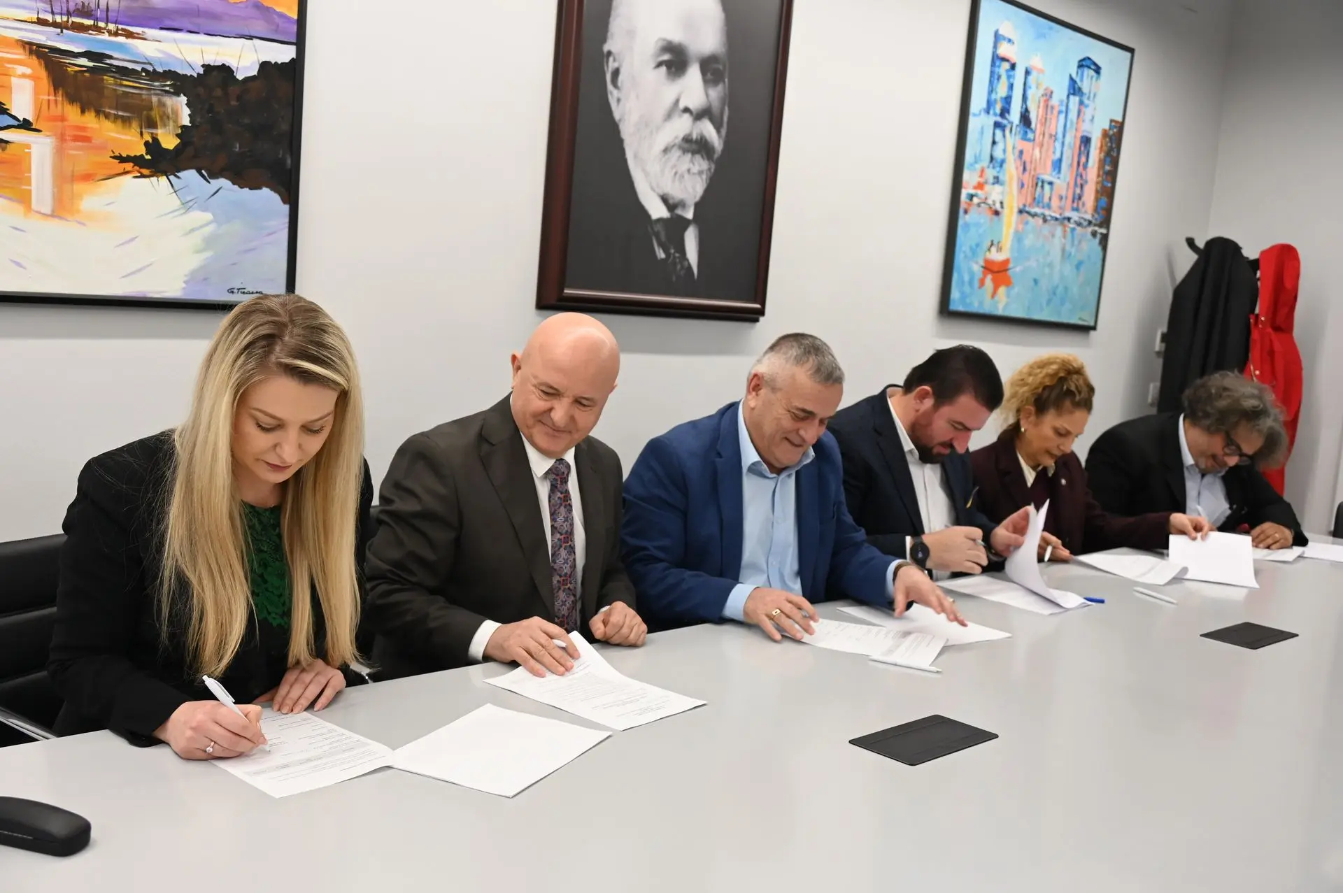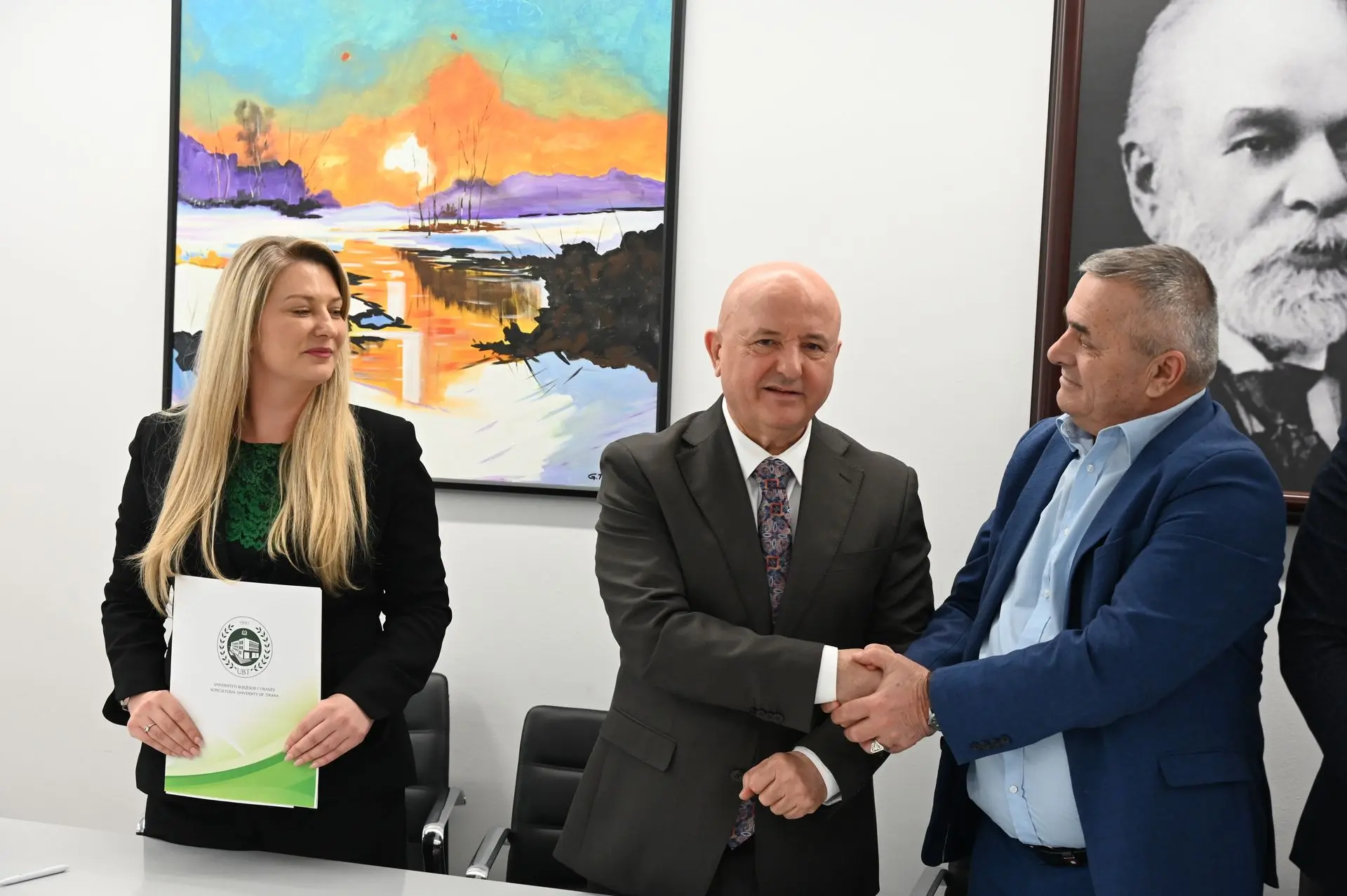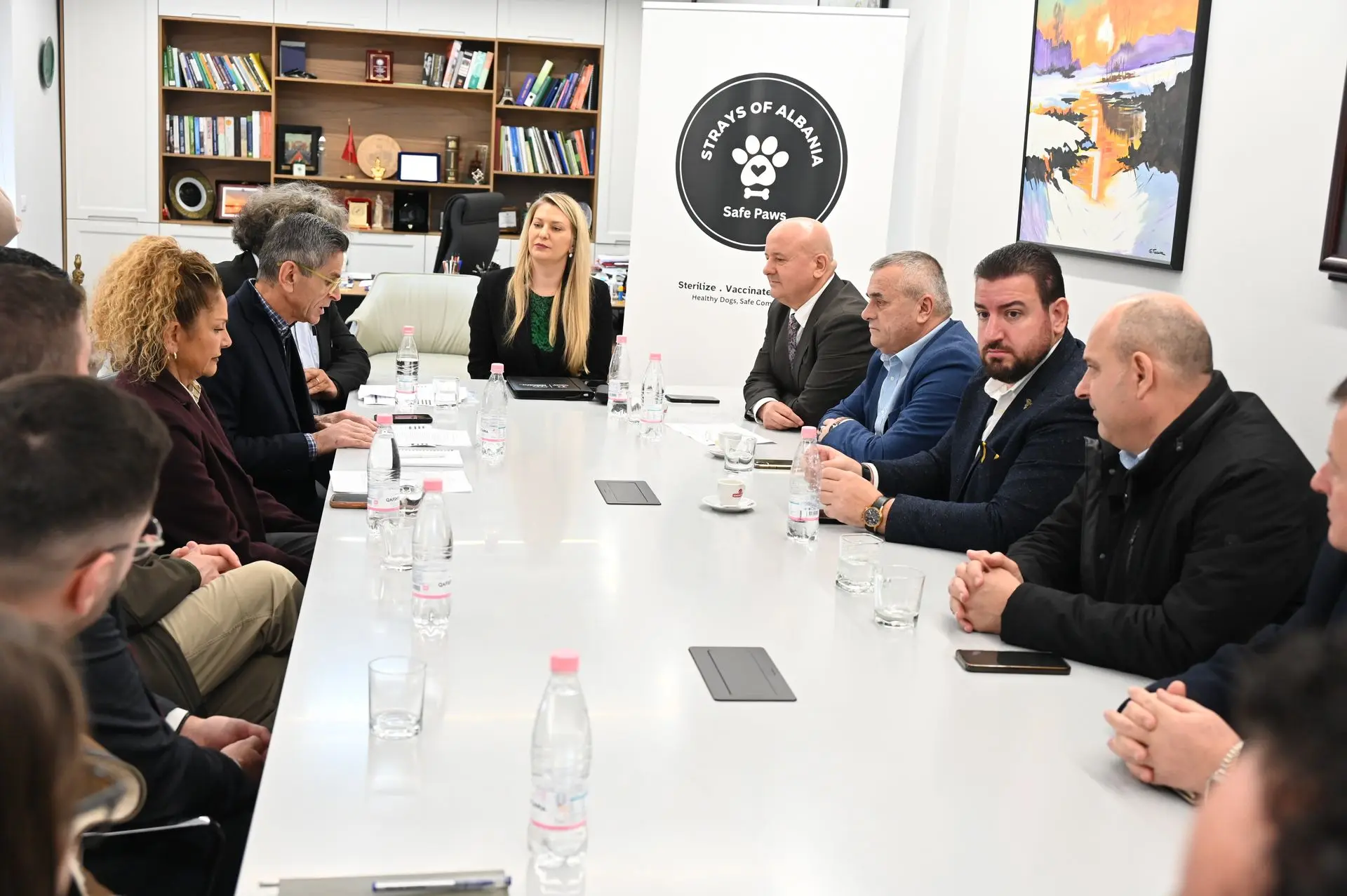 Nënshkrimi i parapriu një takimi kooedinues që u mbajt në ambientet e Rektoratit të UBT-së me pjesëmarrjen e përfaqësuesve nga institucione kombëtare dhe ndërkombëtare, përfshirë AKVMB, UPMVSH, Bashkinë Tiranë, Bashkinë Tropojë, Fakultetin e Mjekësisë Veterinare të UBT-së, organizatën World Vets, SDI dhe Jahangiri Foundation.