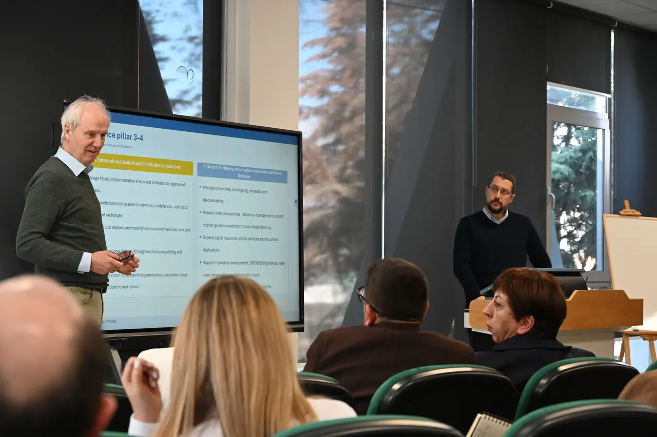 Një sesion i veçantë i grupit të kërkimit shkencor mbi rregulloret e programeve PhD në UBT u mbajt në mesditë, i drejtuar nga zëvendësrektorja për kërkimin shkencor Prof. Dr. Erinda Lika dhe Prof. Dr. Spase Shumka. Në këtë takim u prezantua procedura aktuale e doktoraturës në universitet, zhvillimet më të fundit dhe sfidat që lidhen me përmirësimin e këtij procesi. Diskutimet u përqendruan gjithashtu në programin e mobilitetit akademik dhe në procedurat e aplikimit për studiuesit dhe doktorantët.