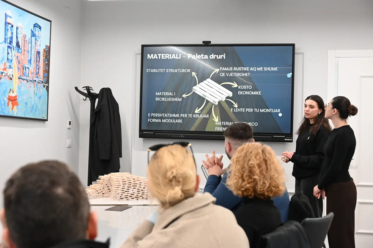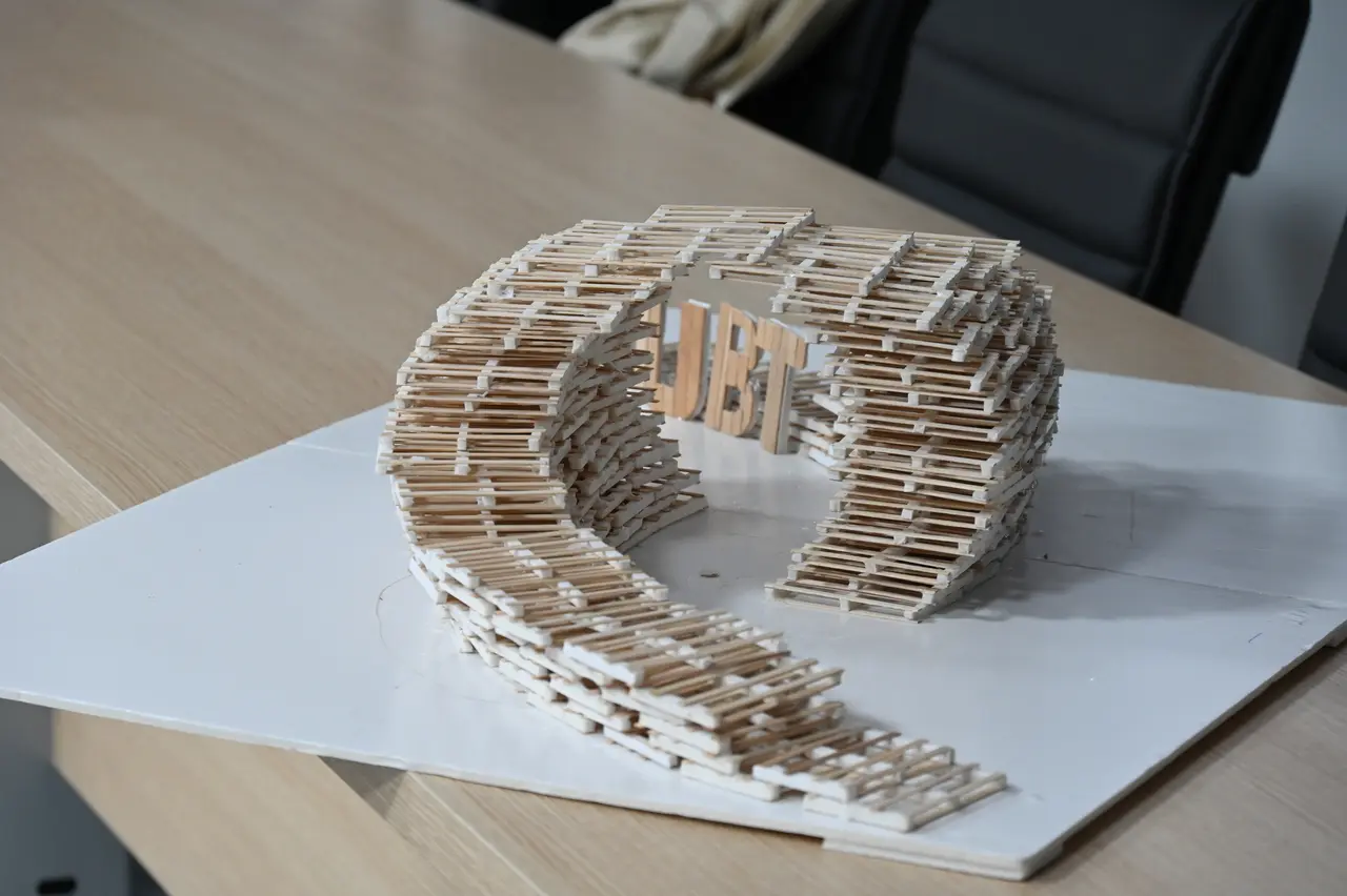 Në ambientet e Rektoratit të UBT u prezantua një instalacion unik prej druri, i projektuar nga studentët e vitit të tretë të degës së Dizajnit të Mobiljeve.