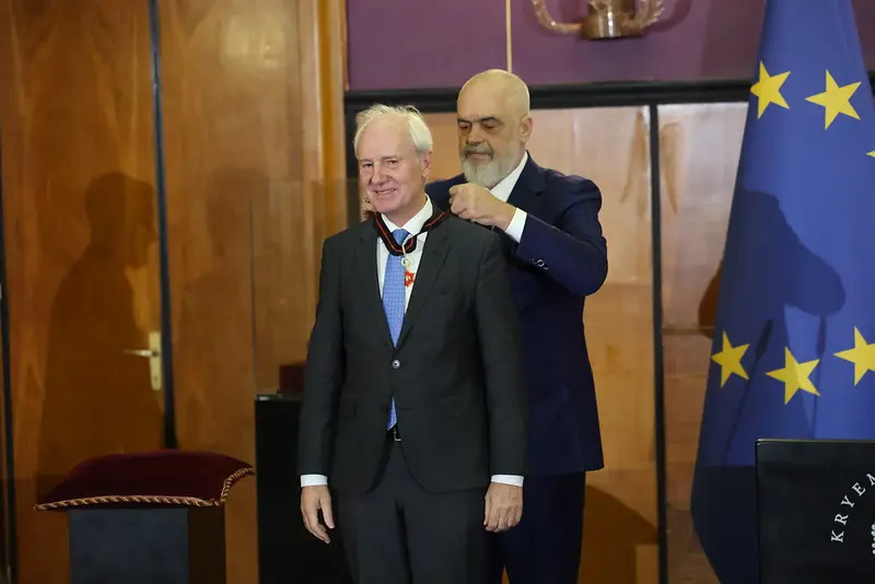 Kryeministri Edi Rama, nderon Profesor Hubert Hasenauer, ish-rektorin e Universitetit BOKU të Vjenës, me dekoratën “Ylli për Mirënjohje Publike”.