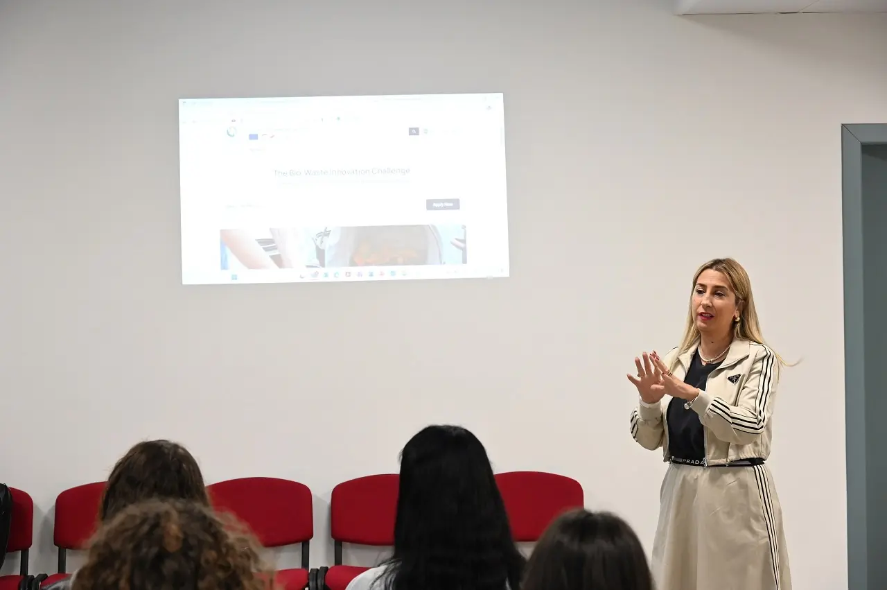 Përfaqësues nga GIZ dhe Helvetas Albania zhvilluan një sesion informues për studentët e Departamentit të Mjedisit dhe Burimeve Natyrore me temë “Sfida Inovative për Bio-Mbetjet” që synon të trajtojë problemin e mbetjeve të biodegradueshme në Shqipëri përmes avancimit të zgjidhjeve praktike të ekonomisë qarkulluese.