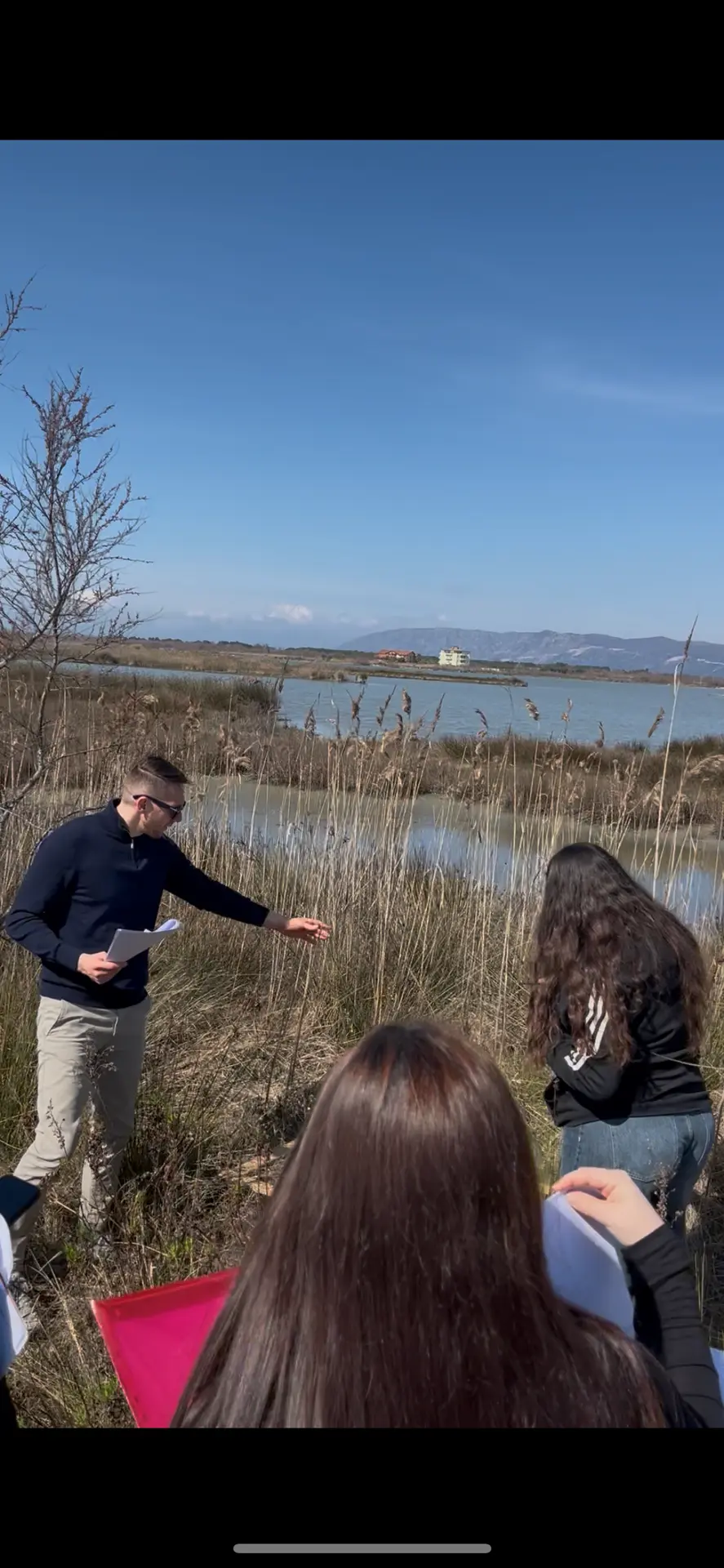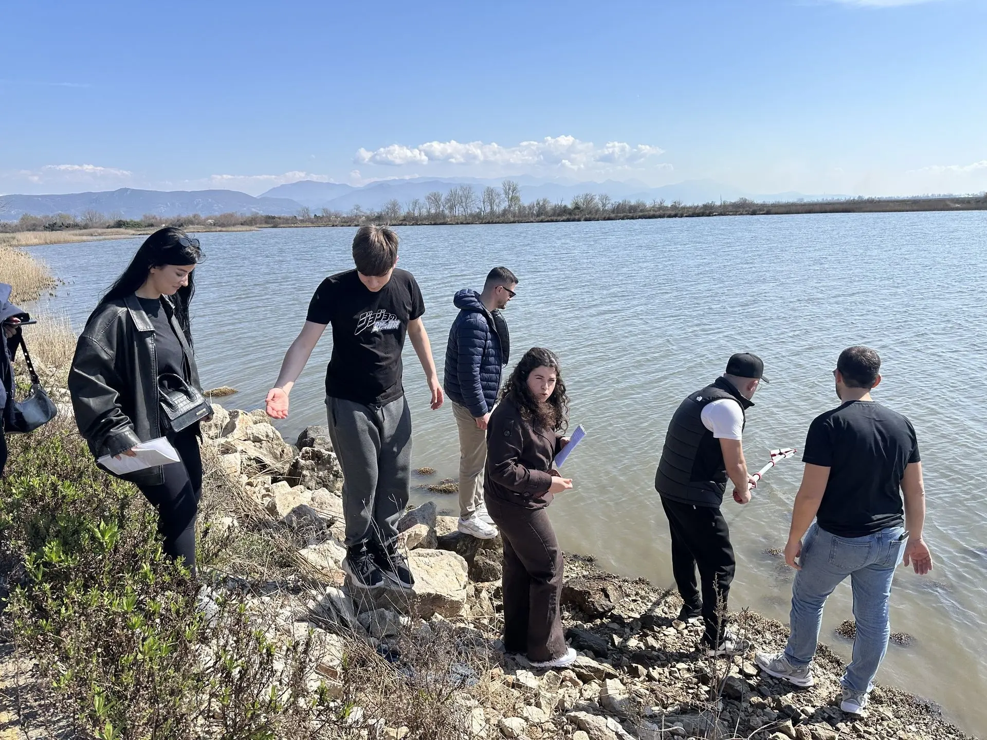 Praktika vijoi në Liqenin e Shkodrës, ku studentët kryen matje fushore të parametrave të ujit (pH, EC, DO) dhe morën kampione për analiza laboratorike, duke vlerësuar ndërveprimin ndërmjet faktorëve natyrorë dhe ndikimeve antropogjene në këtë ekosistem të rëndësishëm ujore.