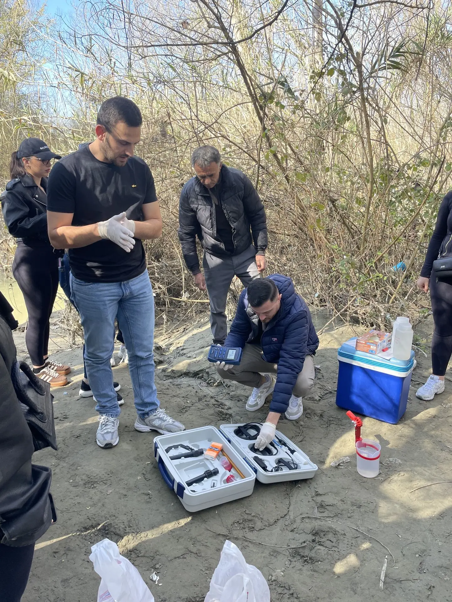 Ndalesa e parë u zhvillua pranë stacionit automatik të monitorimit të ujit, ku studentët u njohën me funksionimin e sistemit dhe rëndësinë e tij për monitorimin në kohë reale të cilësisë së ujërave. Në këtë zonë u kryen matje në terren të parametrave kryesorë (pH, përçueshmëria elektrike – EC dhe oksigjeni i tretur – DO), si dhe u morën kampione uji për analiza laboratorike. Gjithashtu, u realizua kampionimi i tokës për të vlerësuar ndikimin e përmbytjeve dhe transportin e ndotësve drejt tokave bujqësore.