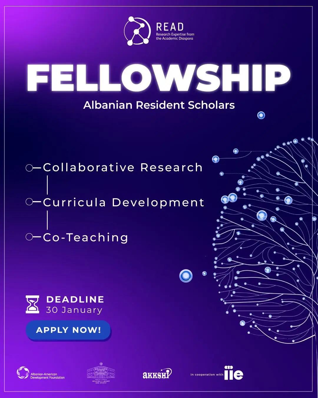 Universiteti Bujqësor I Tiranës njofton se Programi READ – Research Expertise from the Academic Diaspora, i mbështetur nga Albanian-American Development Foundation (AADF) në bashkëpunim me AKKSHI dhe IIE, ka hapur thirrjen për aplikime për kohortën e 5-të.
