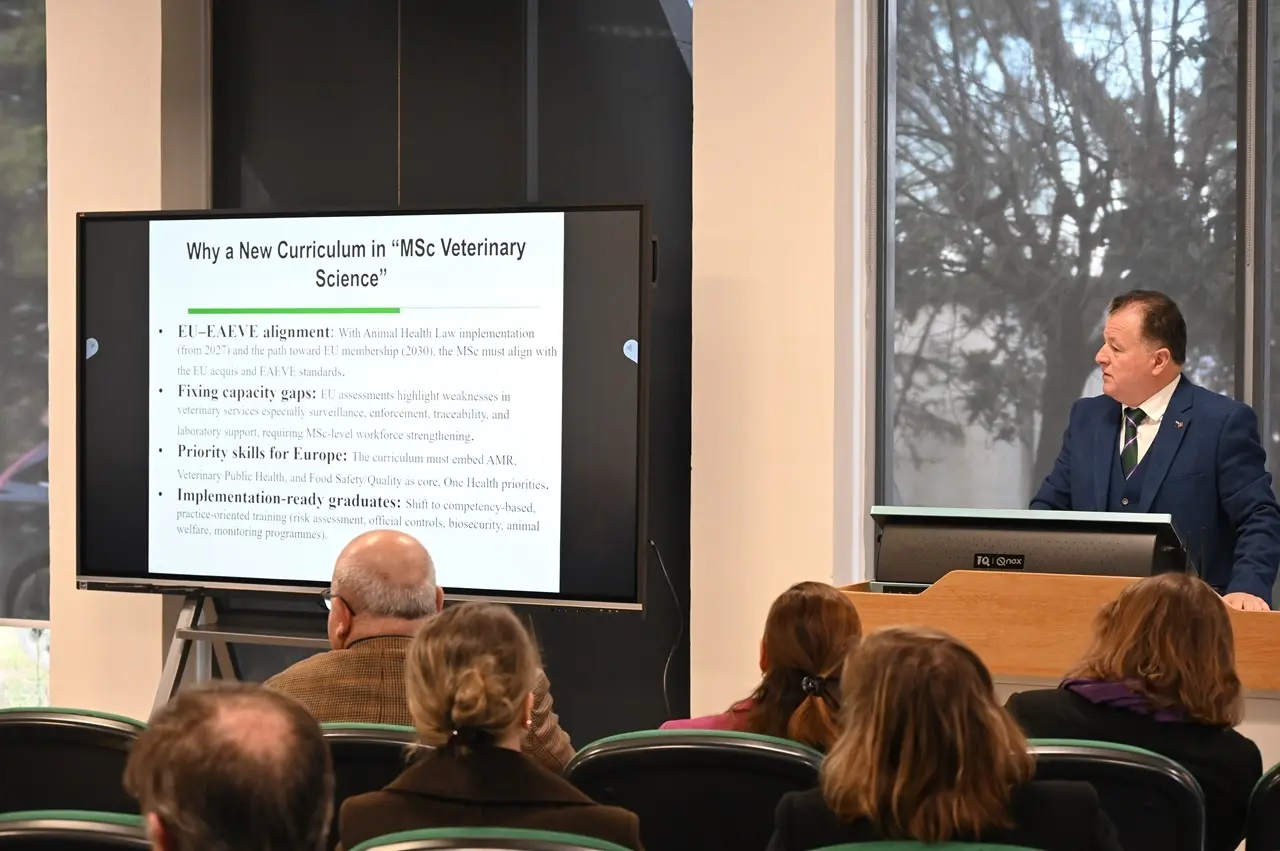 Paraditja nisi me një përditësim nga Grupi i Punës për Mjekësinë Veterinare mbi statusin aktual të rishikimit të programit. Paralelisht, Grupi i Mjekësisë Veterinare punoi mbi zbatimin e programit të ri të VetMed, duke trajtuar çështje akademike dhe strukturore.