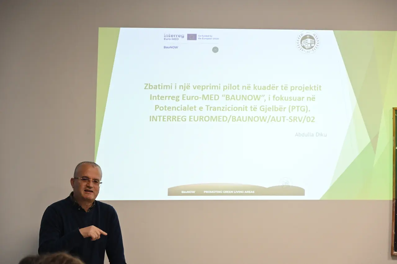 Zv. Rektorja për Marrëdhëniet me Publikun, Prof. Asoc. Romina Koto, prezantoi para një auditori me studentë të programeve të mjedisit, progresin e rastit pilot në Parkun Kombëtar të Dajtit, në kuadër të projektit ndërkombëtar Interreg Euro-MED “BauNOË”, një iniciativë e bashkëfinancuar nga BE-ja që synon promovimin e zonave të gjelbra dhe zhvillimin e qëndrueshëm.