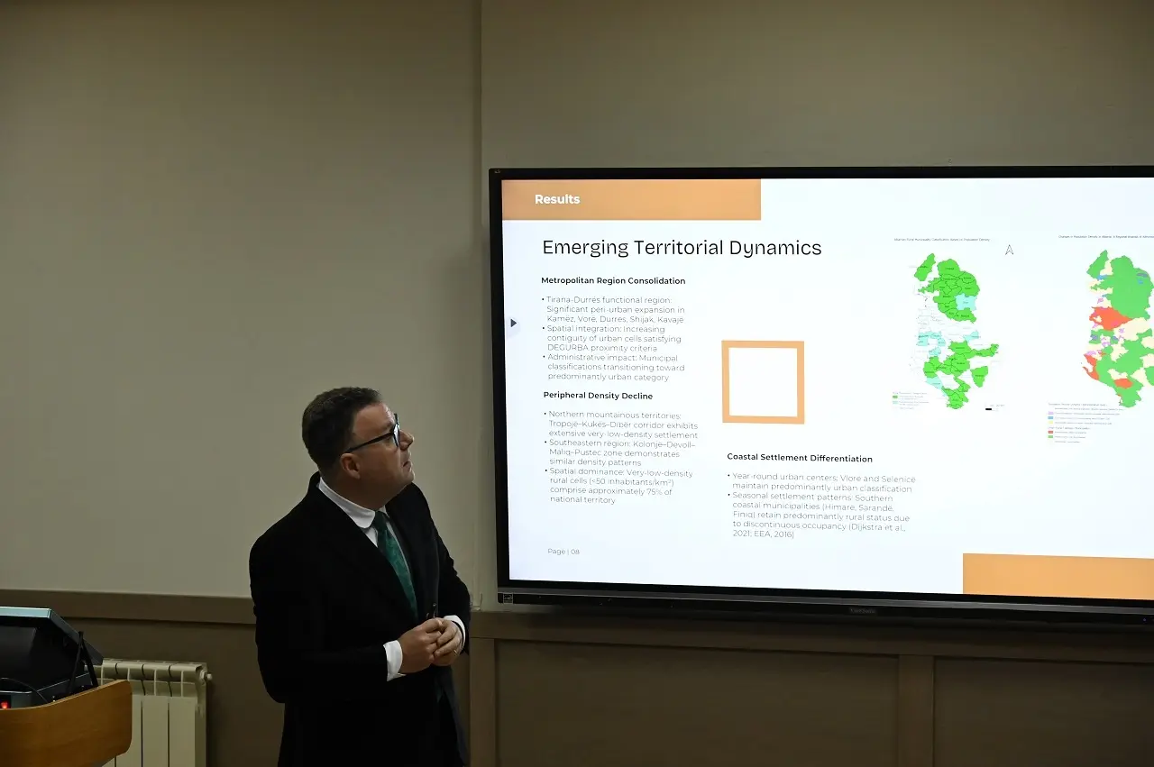 Seanca u mbyll me një prezantim me vlera të veçanta për zhvillimin e territorit shqiptar, mbajtur nga Prof. Fatmir Guri, Zv.Ministër i Bujqësisë dhe Zhvillimit Rural, Shqipëri, i cili solli të dhëna të reja për strukturën e hapësirave rurale dhe urbane në vend, si dhe implikimet që ato kanë për politikat e zhvillimit të qëndrueshëm.