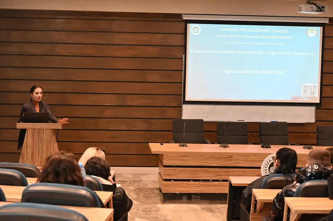 The presentations were delivered by representatives of UBT’s five faculties: the Faculty of Agriculture and Environment, the Faculty of Veterinary Medicine, the Faculty of Economics and Agribusiness, the Faculty of Forestry Sciences, and the Faculty of Biotechnology and Food. Each faculty presented its respective study programs, opportunities for professional internships, modern laboratories, as well as the employment prospects available to students after graduation.