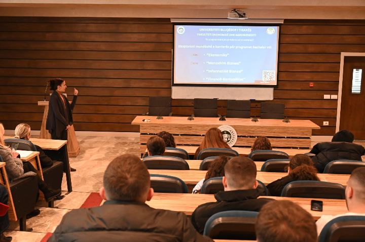 The Agricultural University of Tirana (UBT) held an informational meeting with high school graduates from Tirana, continuing the presentation of its academic offer for the 2026–2027 academic year. The event focused on familiarizing young people with the study programs, career opportunities, and international experiences offered by UBT.